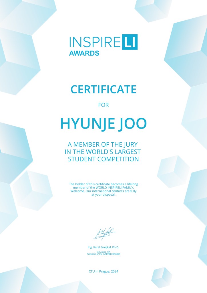 Jury of INSPIRELI Award Hyunje Joo 주현제17/06/202417/06/2024news Beitrags-Navigation VorherigerWeiter 체코의 국제건축공모전 INSPIRELI 에 국제심사위원으로 연임되어 작품심사에 참여하게 되었습니다. Teilen mit: Auf X teilen (Wird in neuem Fenster geöffnet) X Auf Facebook teilen (Wird in neuem Fenster geöffnet) Facebook Auf Pinterest teilen (Wird in neuem Fenster geöffnet) Pinterest